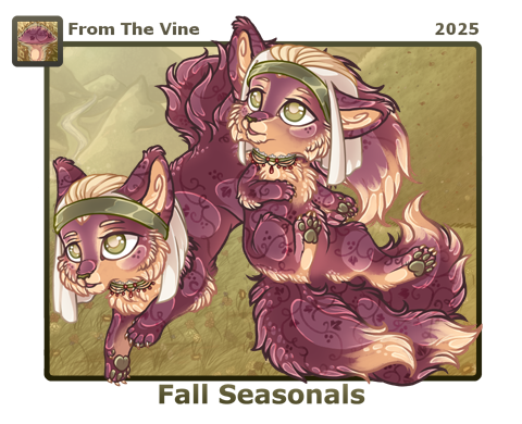 A Change of Seasons Time rolls ever onward, and with the summer sun now setting behind us, autumn has arrived! As such, our new Fall Seasonal coat, From the Vine can now be purchased at Tamshir’s Specialties, along with all of the previous years’ autumn seasonal mushrooms! ![]()